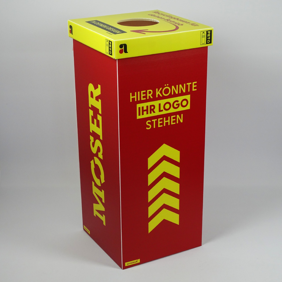Die Recyclingboxen werden aus einem hochwertigen Kunststoff (PP) gefertigt. Sie sind leicht, robust, langlebig, UV- und chemikalienbeständig und könne wieder zu 100% recycelt werden. Als standard bieten wir unsere Recyclingbehälter in einer Grösse von 60l, 85l und 110 Liter an. Veredelt werden die Behälter mittels UV-Digitaldruck. Die Druckdaten können Sie selber mittels Vorlage aufbereiten oder uns die gewünschten Motive, Texte zusenden.