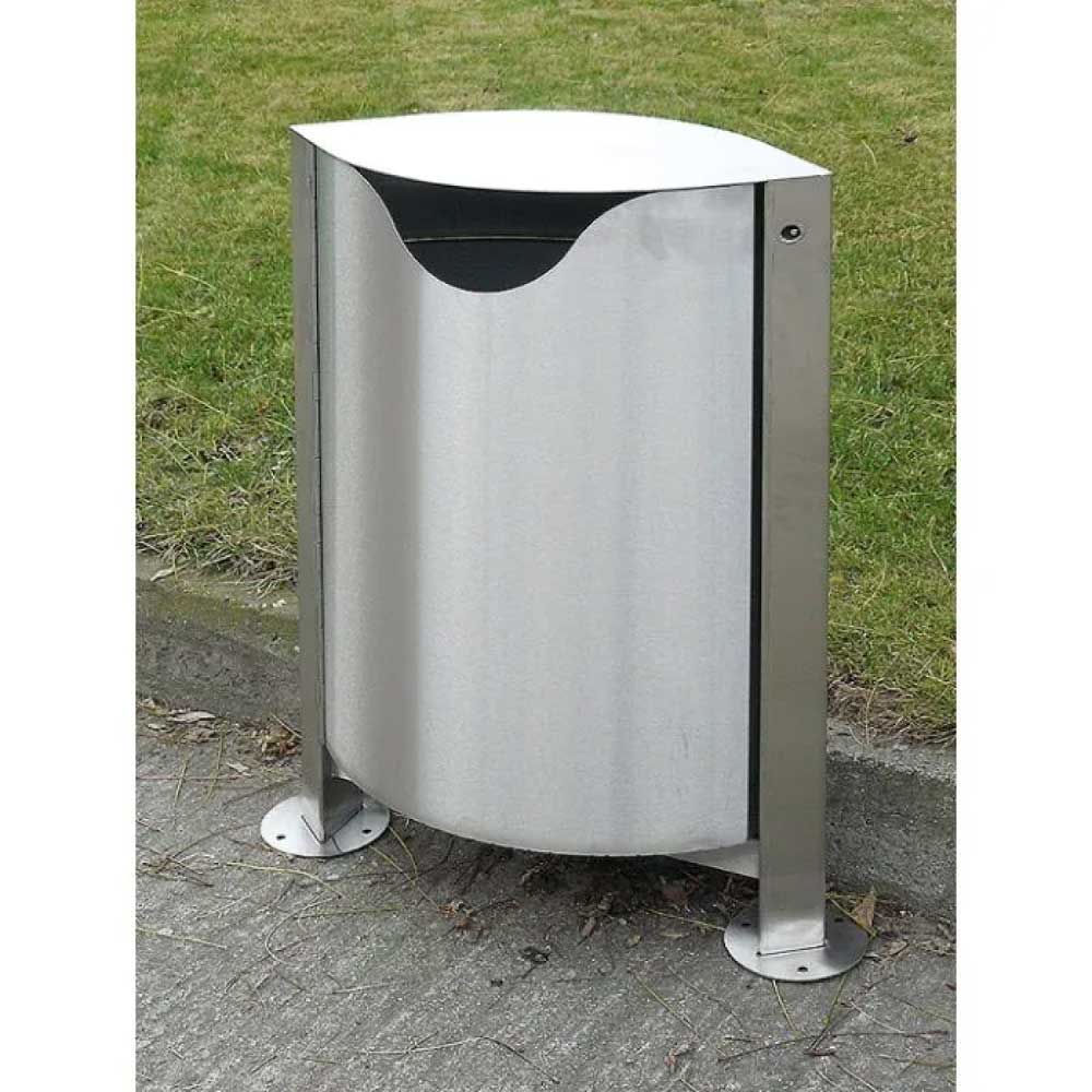 Der Abfallbehälter Pappel aus Edelstahl überzeugt durch sein modernes Design und seine robuste, rostfreie Ausführung. Mit einem Fassungsvermögen von 55 Litern eignet sich der Abfallbehälter ideal für öffentliche Aussenbereiche, Firmengelände und Eingangsbereiche. Der Behälter ist drehbar um eine zentrale Säule konstruiert, was die Entnahme und den Wechsel des Kunststoffbeutels besonders einfach macht. Ein festes Dach schützt den Abfall vor Witterungseinflüssen, während das integrierte Schloss unbefugten Zugriff verhindert. Zur Sicherung gegen Diebstahl und für maximale Stabilität ist der Abfallbehälter zur Bodenbefestigung vorgesehen.