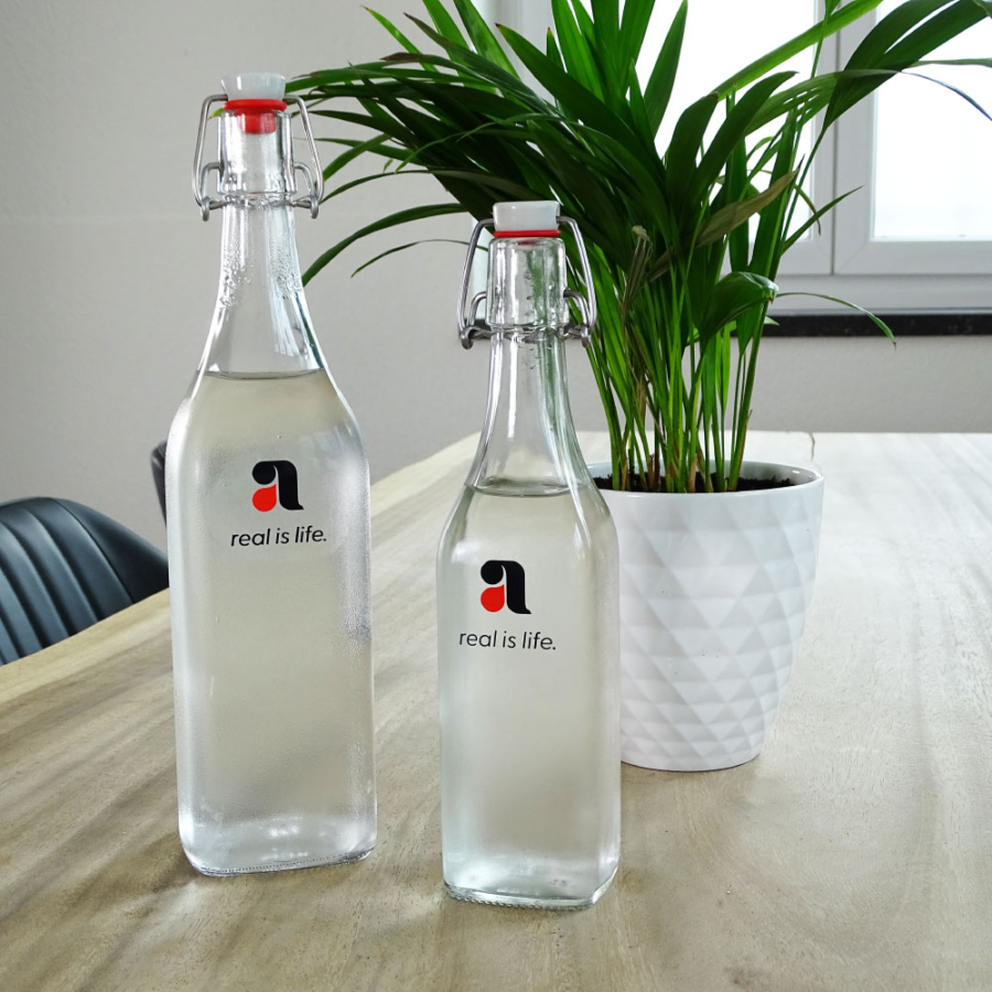 Was gibt es besseres als recyceln? Man kauft keine Produkte welche recycelt werden müssen… Kühles Wasser aus der avakuk® 1/2l Trinkflasche Glasflasche real is life.  Wir sind der Meinung, dass frisches schweizer Hahnenwasser aus der Glasflasche einfach am besten schmeckt. Es kann Geld gespart werden und Sie müssen keine PET-Flaschen mehr kaufen und entsorgen. Ein nachhaltiges Produkt, welches Ressourcen einspart und somit die Umwelt schont.