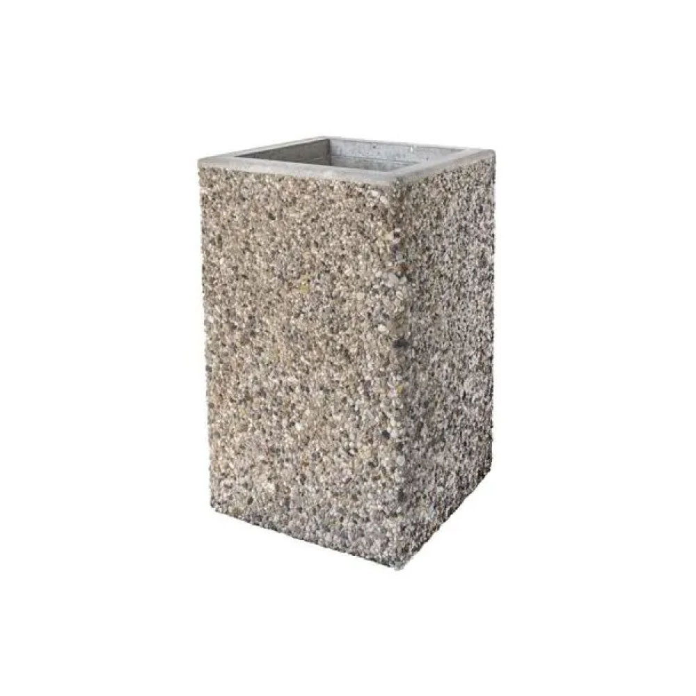 Der eckige Mülleimer aus Waschbeton überzeugt durch seine massive Ausführung und extreme Widerstandsfähigkeit. Mit einem Eigengewicht von 280 kg ist er besonders vandalismussicher und widersteht mechanischen Beschädigungen zuverlässig. Durch sein funktionales und zeitloses Design eignet sich der Abfallbehälter ideal für öffentliche Bereiche wie Stadtteile, Plätze oder Parks. Der Behälter ist mit einer Ablauföffnung im Boden ausgestattet, die den Abfluss von Flüssigkeiten ermöglicht und gleichzeitig zur festen Verankerung dient. Optional kann der Mülleimer mit einem verzinkten Einsatz sowie mit passenden Deckeln in Grün oder Weiss ergänzt werden.