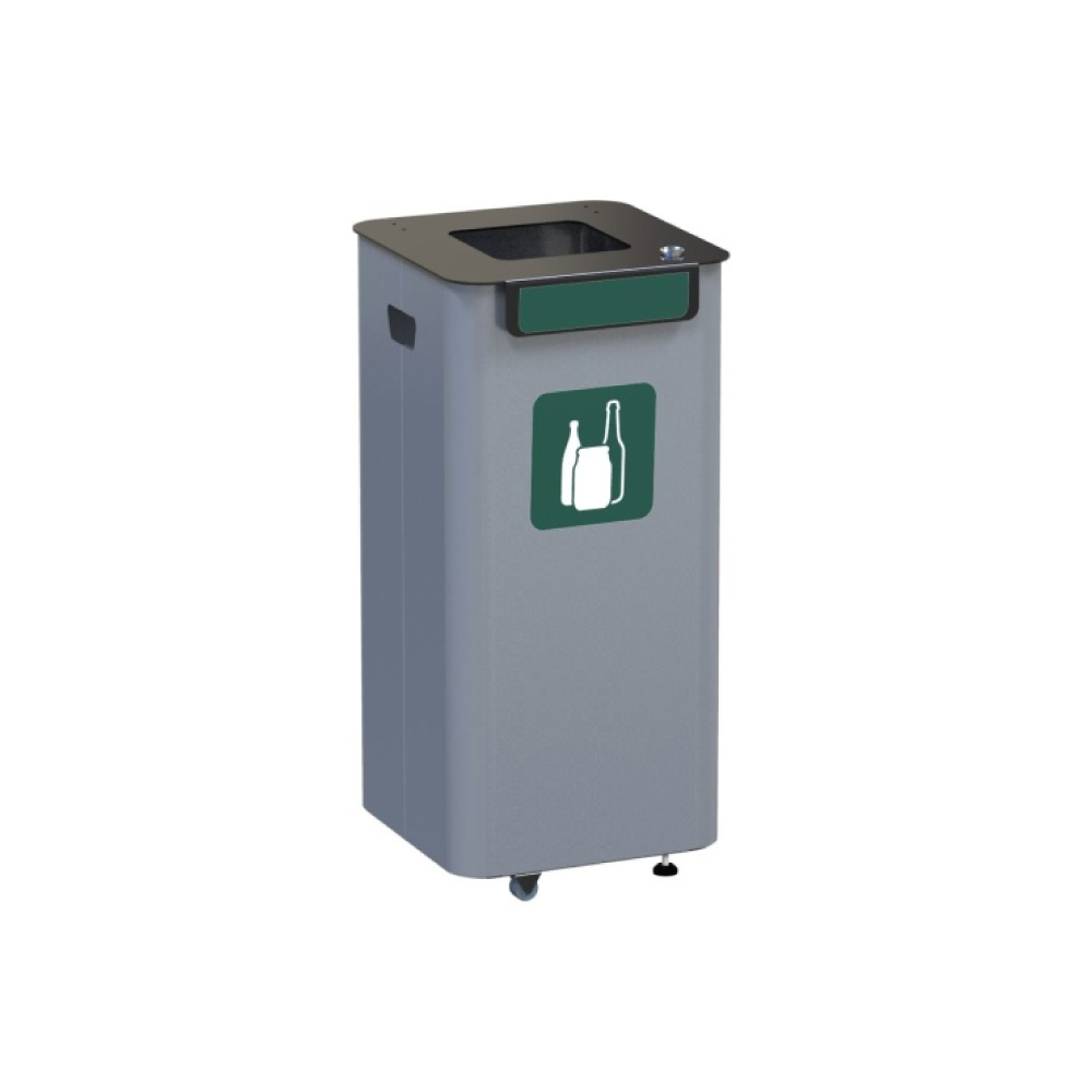Ein schöner und hochwertiger Recyclingbehälter aus verzinktem Stahl mit Korrosionsschutzbeschichtung für die Anwendung im Freien. Der Behälter hat höhenverstellbare Beine auf der einen Seite und Räder auf der anderen Seite mit seitlichen Griffen, was eine einfache Handhabung ermöglicht. Der Klappdeckel kann bei geöffneter Position arretiert und mit einem Dreikantschlüssel sicher verschlossen werden. Der Beutel ist sehr einfach mittels eingebauter Feder zu befestigen. Die 3 Kammern sind für einen Inhalt von 70 Liter geeignet.