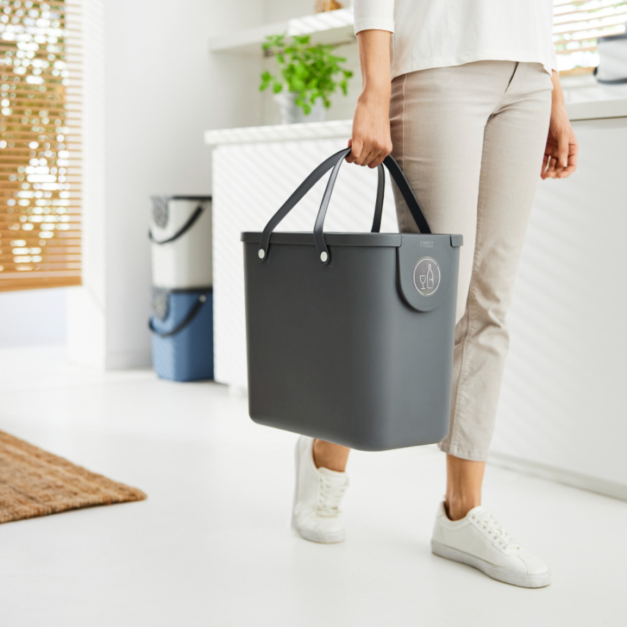 Die Recyclingbehälter sind mit einem stabilen Tragegriff ausgestattet und können bequem zur nächsten Recyclingstation transportiert werden. Die Behälter sind für ein maximales Gewicht von 40Kg konzipiert.