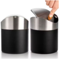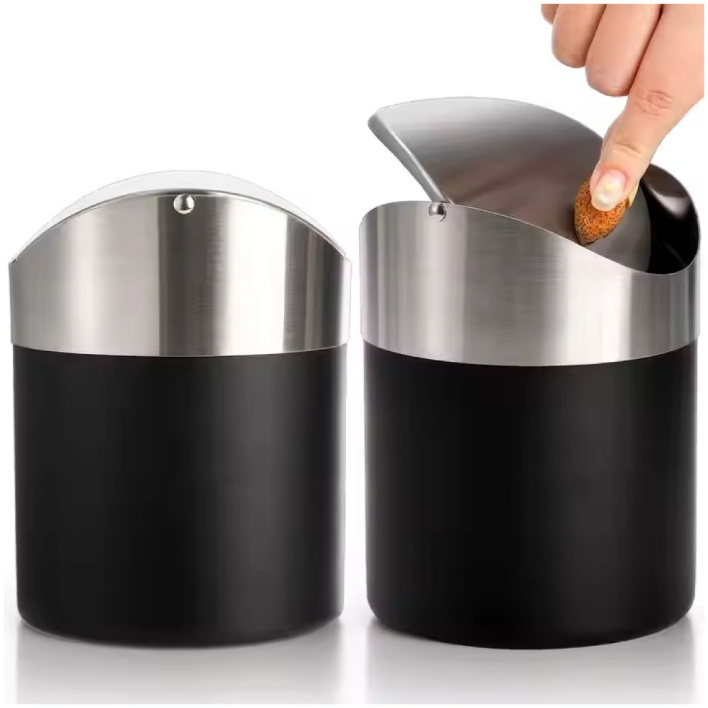 Tischabfalleimer mit Deckel Chromstahl Schwarz