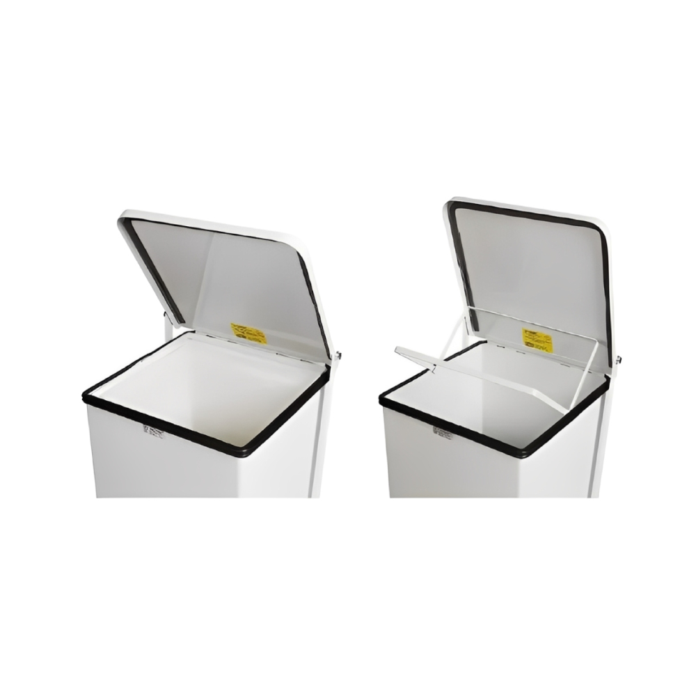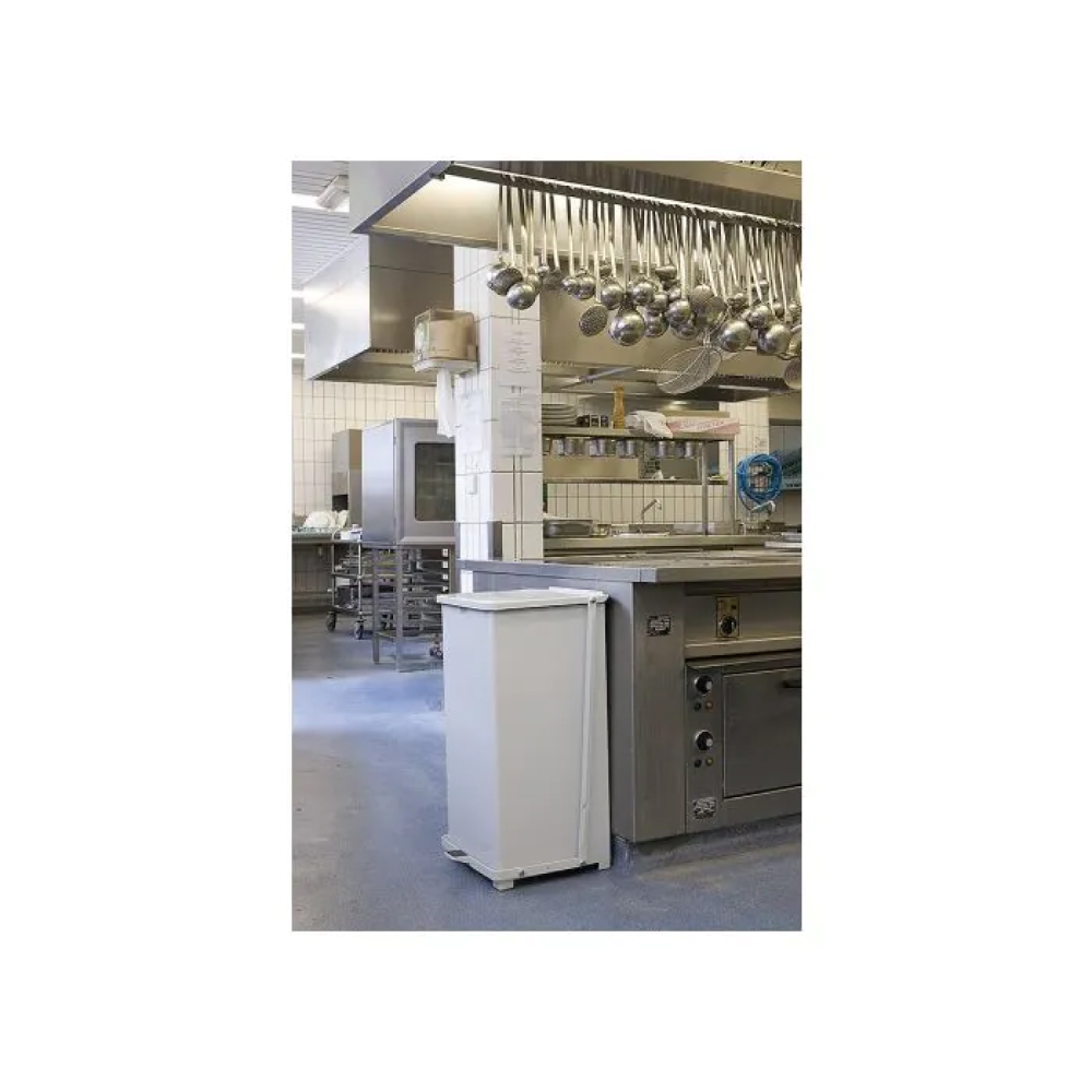 Der dicht schliessende Abfalleimer mit Pedalöffnung ist speziell für Küchen, Hotels und Spitäler konzipiert. Gefertigt aus verzinktem Stahl und pulverbeschichteter Oberfläche. Der dicht und selbstschliessende Deckel mit Dämpfer verhindert die Verbreitung von schlechten Gerüchen, Bakterien und schränkt die Verbreitung eines Brandes ein. Der Abfallbehälter ist mit einem inneren Kunststoffbehälter und einem Rahmen für Abfallsäcke ausgestattet.